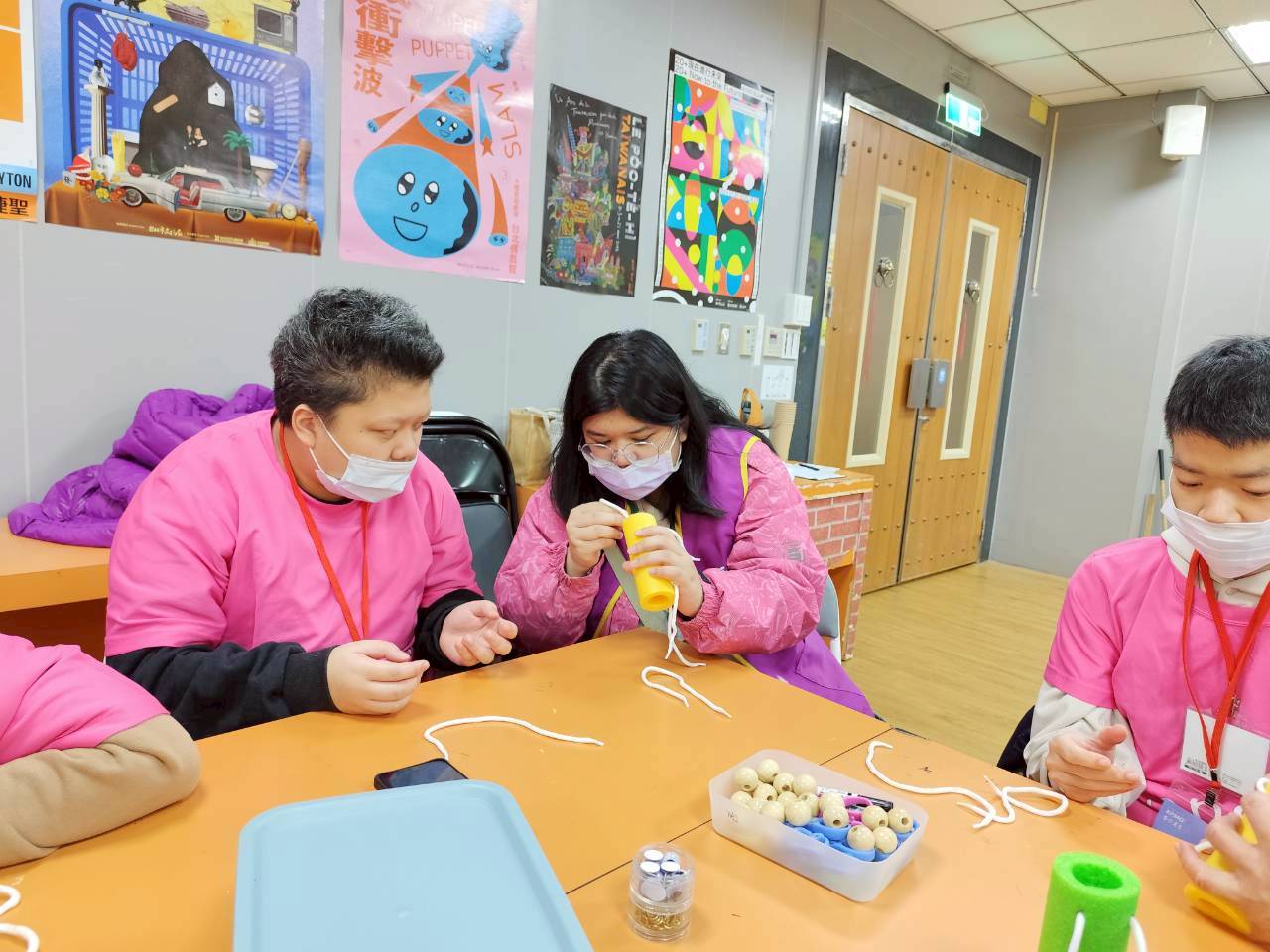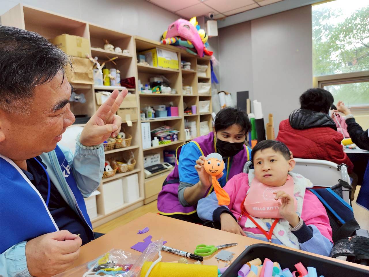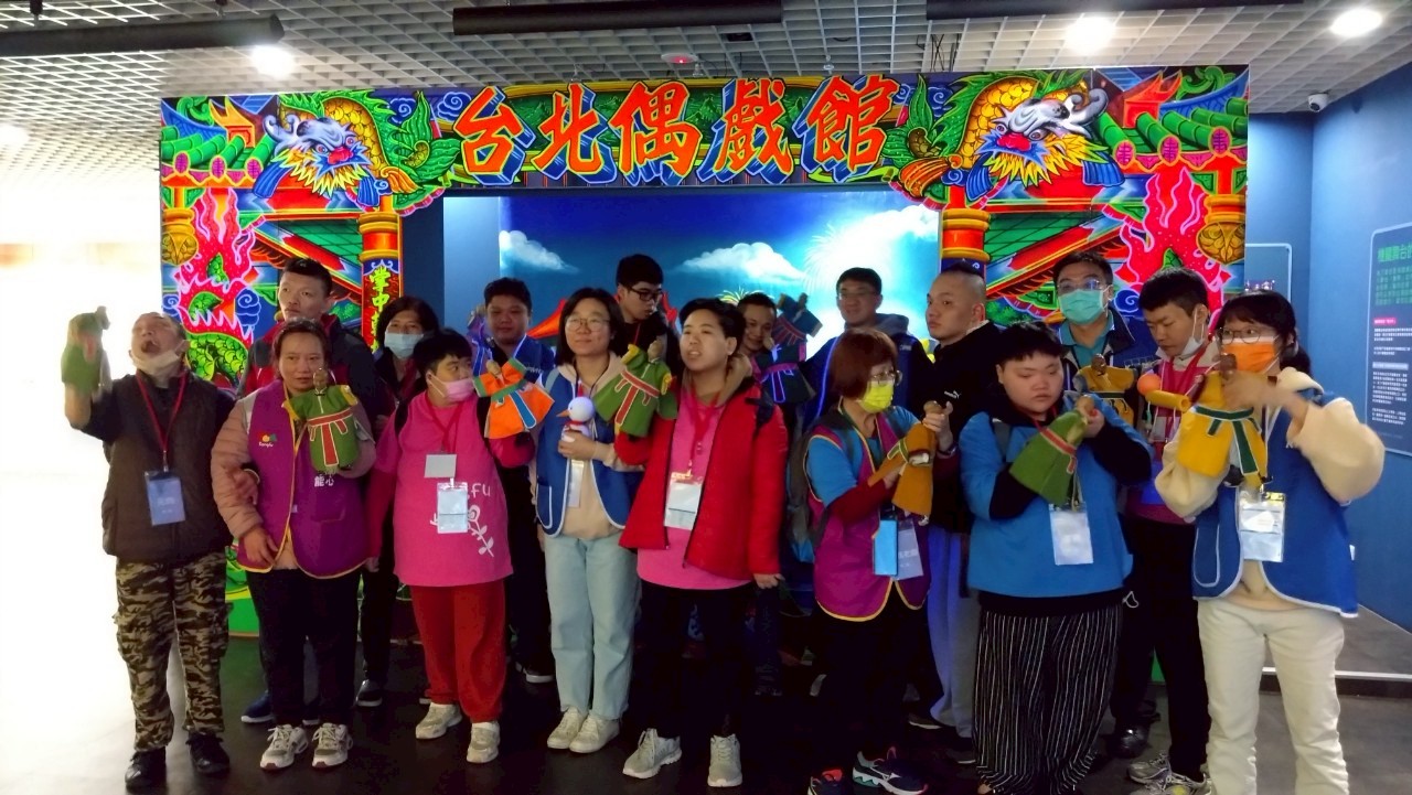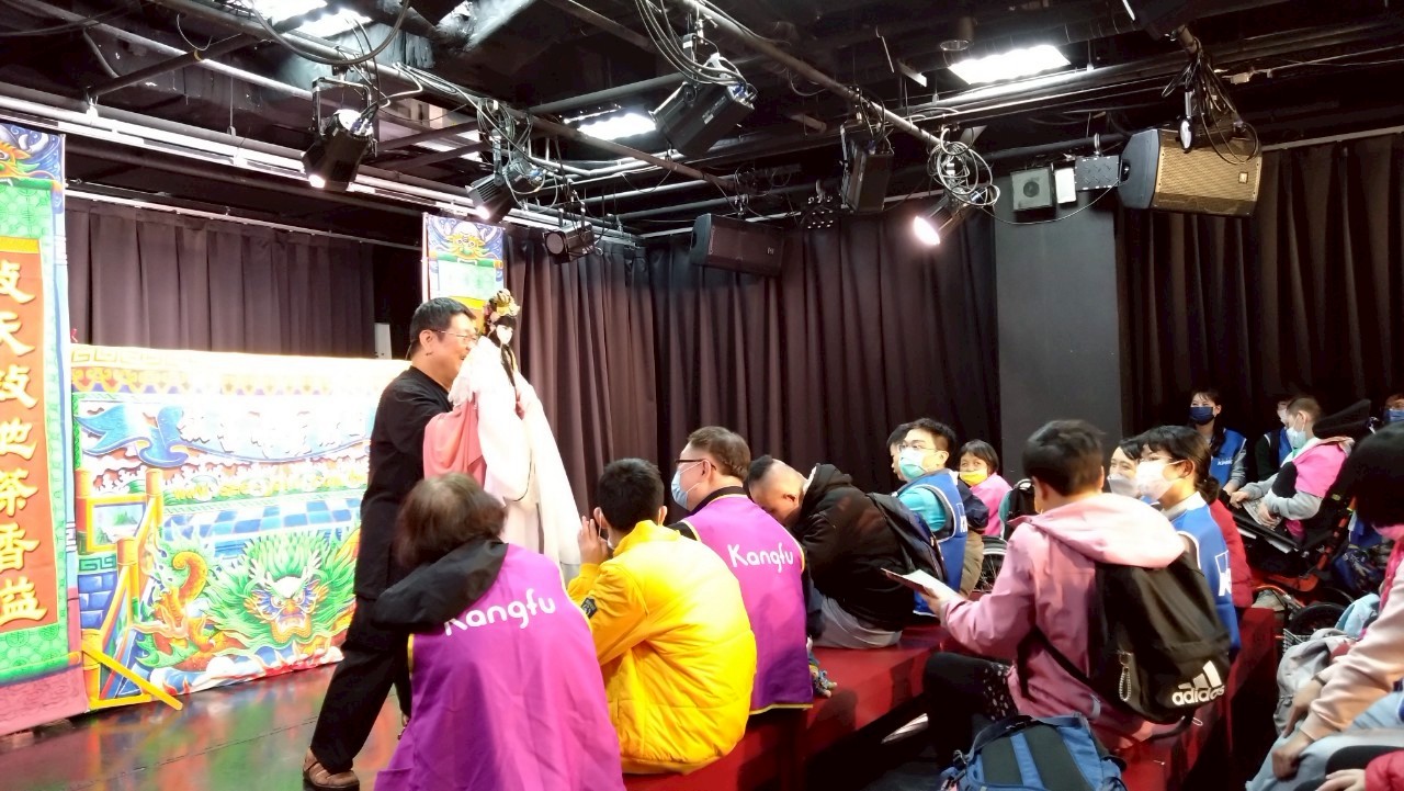 工作人員在出發的前夕幫服務對象上課介紹偶戲館的陳設及要注意的事項,